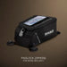 Small tank bag with reflective elements for added safety. Top compartment with touchscreen for smartphones.