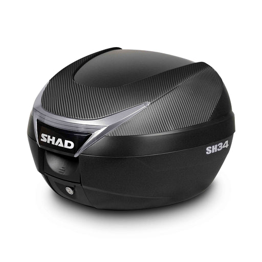 SHAD SH39 top case features a Carbon finish cover with storage capacity for (1) full face helmet and (1) open face helmet or (1) helmet with additi...