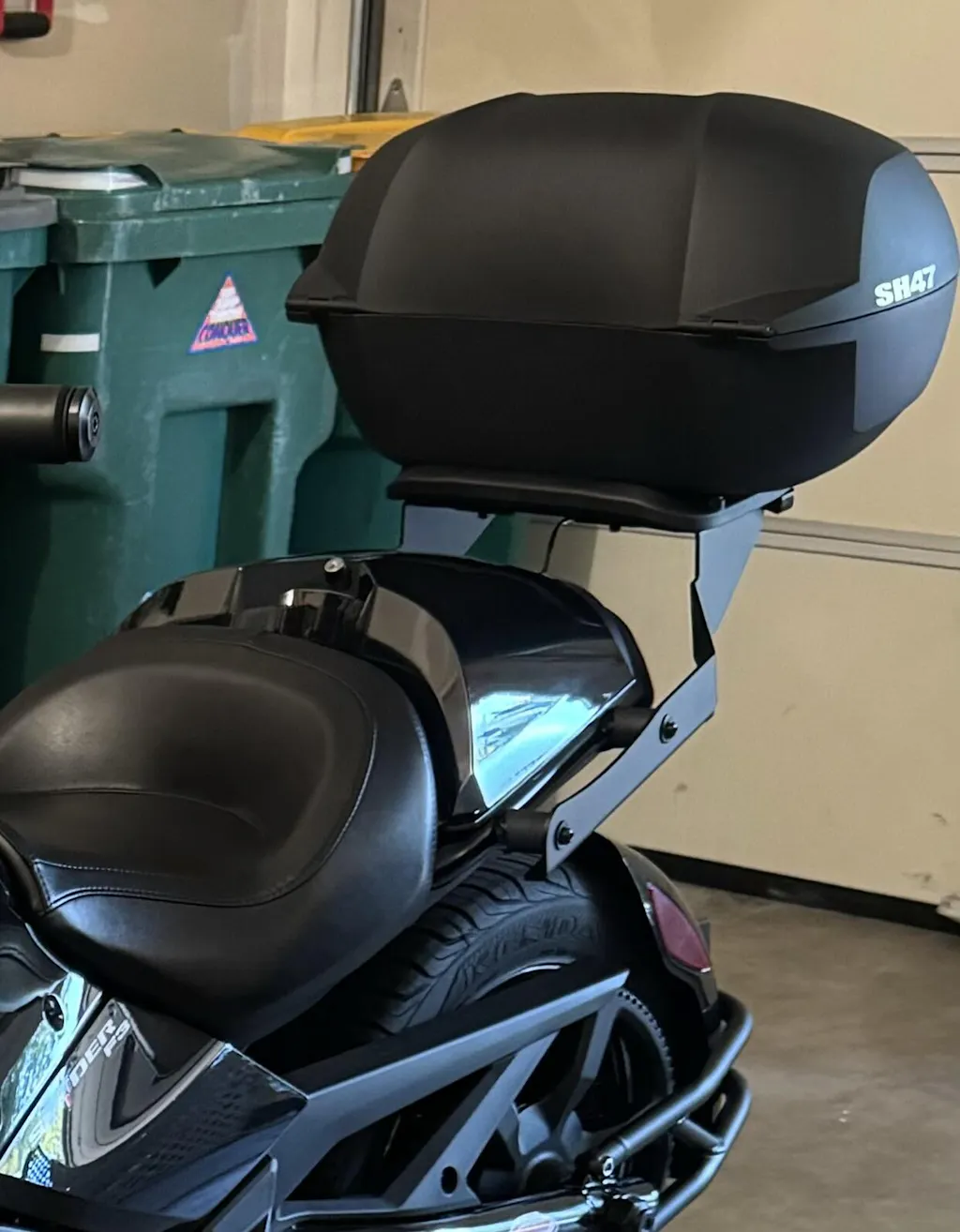 SH47 RED is a top case designed in Barcelona. Following an aggressive aerodynamic shape, it features a modern and sleek look. Made with high-quality reinforced polypropylene, it has capacity to hold 2 full-face helmets, plus travel accessories.